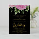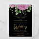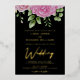 Black background and gold, rose gold or silver foil lettering watercolor pink roses wedding invitation template design ready for you to customise. This elegant foil wedding invitation design features roses and text in a handwritten font. You can personalise this invitation with your own details and colours.