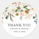 Elegant Watercolor Pink Roses and White Magnolias Wedding Thank You Gift Favour Sticker includes botanical greenery and eucalyptus leaves.