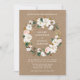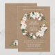 Watercolor Pink Roses White Magnolias Wreath Kraft Invitation