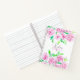 This customisable notebook features a delicate watercolor print of pink roses blooming amidst lush green leaves, lending an air of femininity and elegance. The soft shades of pink and green against the white background create a soothing visual effect, making the notebook a pleasure to use. The notebook features a sturdy spiral binding on the left, ensuring ease of use. The highlight of the design is the personalised text, elegantly scripted in the centre. This indicates the option for any name to be inscribed, adding a personal touch to the notebook. Overall, this notebook is not just a writing tool, but a piece of art that can be personalised, making it a perfect gift for someone special or a treat for oneself. The floral design exudes a gentle, ethereal quality that is sure to inspire creativity and joy in writing.