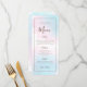 A background of watercolor teal blue and pinks with silver confetti splashes gives these menu cards a summery feel! The brown typography is easily personalised to your own details and the white part of the background and text colours can be changed if you so wish via the Click to Customise Further Option. The pastel watercolors and silver splashes continue on the back.