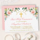 Elegant Watercolor Pink Blush White Floral First Holy Communion Invitation includes pink roses, white flowers and greenery leaves. Gold Cross.
