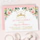 Elegant Watercolor Pink Blush White Floral Mis Quince Anos Quinceanera Invitation includes pink roses, white flowers and greenery leaves. Pink Back. Calligraphy Script Name. Gold Tiara Crown.