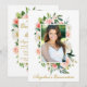 Modern Elegant, Quinceanera Watercolor Pink Blush Floral and Gold Photo Invitation Card includes pink roses, white flowers and beautiful botanical greenery.