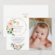 Watercolor Pink White Flowers Girl Photo Baptism I Invitation