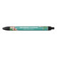 Watercolor Pink White Petunia Turquoise Background Black Ink Pen