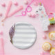 Watercolor Pink & White Stripes Floral Paper Plate