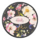 Watercolor Pink Yellow Roses on black, Monogram Hockey Puck