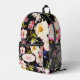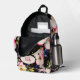 Watercolor Pink Yellow Roses on black, Monogram Printed Backpack