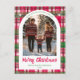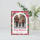 Watercolor Plaid Christmas Custom Arch 3 Photo Holiday Postcard