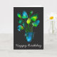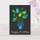 Watercolor plant art green and blue abstract card
