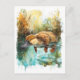 A unique watercolor of a platypus swimming in a pond, showcasing the fascinating features of this Australian animal.