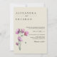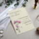 This charming boho wedding invitation features a simplistic, modern look with dark pink flowers adorning the front of this rustic wedding invitation in beige and plum. This lovely pink floral wedding announcement would be ideal for a country or garden wedding with it's botanical theme.