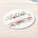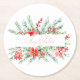 Watercolor poinsettia and greenery Christmas Round Paper Coaster
