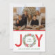 Watercolor Poinsettia Christmas Wreath Joy Holiday Card
