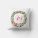 Watercolor Poinsettia Christmas Wreath Monogram Cushion
