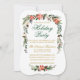 Elegant Watercolor Poinsettia Floral Green and Gold Script Holiday Party Invitation includes beautiful watercolor red poinsettias, botanical greenery, winter foliage, holly berries, white roses, cotton, pine cones and blue berries. Bracket Style.