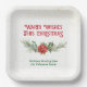 Watercolor Poinsettia Holly Bouquet Christmas Paper Plate