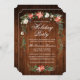 Elegant Watercolor Poinsettia Floral Holiday Party Invitation includes beautiful watercolor red poinsettias, botanical greenery, winter foliage, holly berries, white roses, cotton, pine cones and blue berries. Rustic Country Wood.
