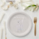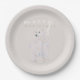 A modern elegant set of cream Christmas paper plates designed with a hand-painted watercolor polar bear and stylish typography in white and gold