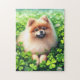Watercolor Pomeranian Green Shamrock Field Jigsaw Puzzle