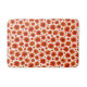 This rug is just as pictured! Vibrant Red and very soft material, nice to step in out of the tub! Matches my set of accessories and shower curtain! A must have to add some whimsy to your bathroom! Very nice, vibrant and clear print! Beautiful!