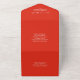 All in one wedding invitation with watercolor poppy red flowers. Design with bright shades of red and a floral design on an off-white background. The back of the tearable card with your return address so you can add a postal stamp and mail it without an envelope. Personalise it with 3 menu options and dietary restrictions. The foldable top has your address and the centre is editable with your guest's address (pre-fill it online one by one, add a pre-made label, or handwrite it).