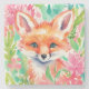 Watercolor Preppy Palm Beach Fox in Flowers Stone Coaster
