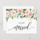 Just married! Announce your marriage to family and friends with this floral wedding announcement stationery card. It features watercolor floral garland of white and blush peonies and roses with greenery accents. Personalise by adding your details. This floral just married wedding announcement card is perfect for any wedding season and theme.