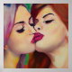 Watercolor Pride Two Women Share a Kiss Poster