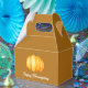 Thanksgiving party Favour Boxes with watercolor pumpkin in mustard yellow and ochre colours.