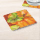 Hey Y'all, It's Fall! Time to put out the cute Fall pumpkin watercolor design coasters that have such a cosy theme. This bright orange pumpkin was just picked and ready for you, complete with a few leaves which make a beautiful contrast. Style shown with scalloped edges.