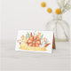 This place card has a watercolor autumn pumpkin design with a banner that you can write in the names of your guests. The inside and back have an orange and white polkadot pattern.