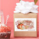 Watercolor pumpkins and autumn leave on a rose gold background with sparks. Stickers for small businesses.
