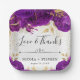 Watercolor Purple and Gold Flowers Wedding Paper Plate
