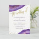 These elegant, modern wedding invitations feature watercolor purple geode stones, with faux gold typography and splashes.