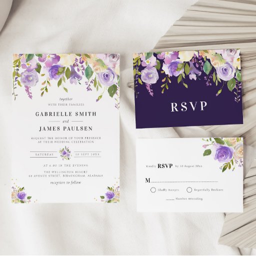 purple, mauve & peach floral invitation setDesigned by Tafa Ryan