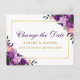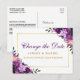 Watercolor Purple Floral Gold Change The Date Postcard