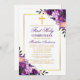 Watercolor Purple Floral Gold First Communion Invitation
