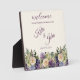 Welcome your guests in style with our Personalised Watercolor Purple Flower Bouquet Tabletop Welcome Sign. Add a personal touch by including your name and wedding date creating a warm and memorable greeting for your loved ones as they arrive at your special day.