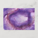 This modern wedding reception card features a white front with dark purple border, and a watercolor purple geode pattern on the back.