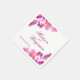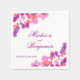 Watercolor Purple Pink Coral Wedding Cocktail Napkins, personalised with the bride and groom's names and wedding date. Please note that the design does not print all the way to the edge of the napkin.