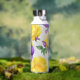 A beautiful art piece featuring a delicate rose painted in shades of purple and yellow using the watercolor technique. The water bottle captures a rose's elegant and romantic essence, making it a perfect addition to any art collection or home decor.