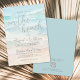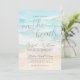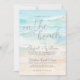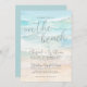 Simple Seaside Watercolor Summer On The Beach Wedding Invitation. A calming blue and tan beach watercolor background sets the stage for an elegant seaside wedding. The artwork shows a close-up of the shore meeting gentle ocean waves—offering a soft, slightly abstract take on a coastal setting.