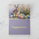 This Easter greeting card has a beautiful watercolor print of a rabbit, eggs and daffodils done in pastels. You can personalise all outside and inside greetings to give it that unique personal touch.