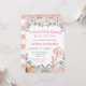 Watercolor Rabbit and Pink Flowers Baby Shower Invitation