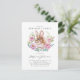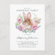 Watercolor Rabbit and Pink Flowers Birthday Party Invitation Postcard