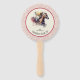 Elegant derby party ivory hand fans feature a watercolor racehorse and jockey on the way to the finish line with a red pattern border. MATCHING items in our collection.