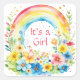Watercolor Rainbow and Flowers It's a Girl Square Sticker