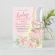 Watercolor rainbow floral ballet bear baby shower invitation